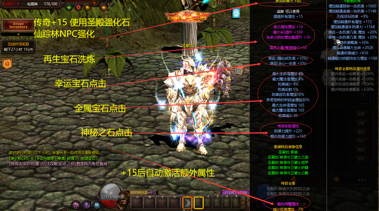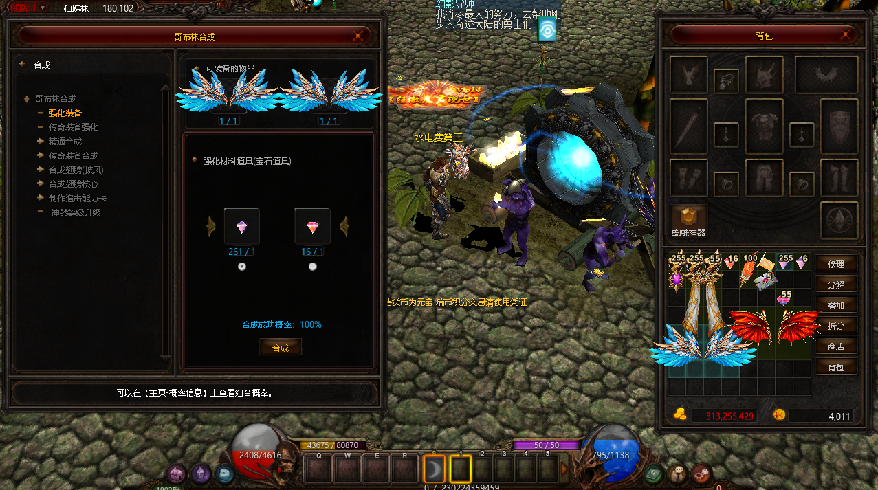 | 合成设置 | 开放仙踪林合成.让大家体验合成之快乐.开放各大属性宝石.增幅卓越属性等等 |