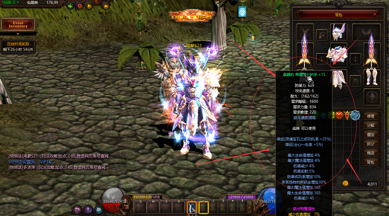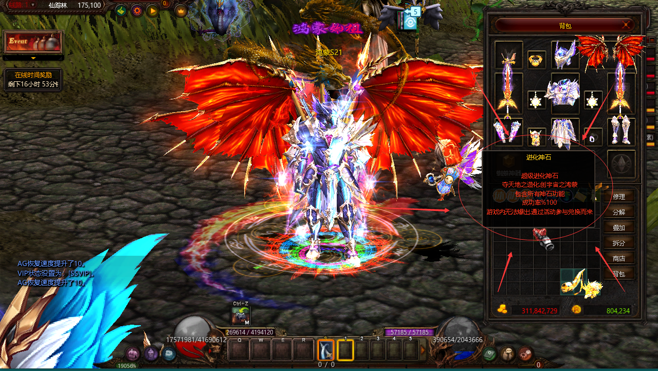 | VIP11 | 500000元宝 | 经验/血量/攻击/防御/SD值/伤害减少/提升11% | 仙踪林合成+15成功率+70% | ![]() |