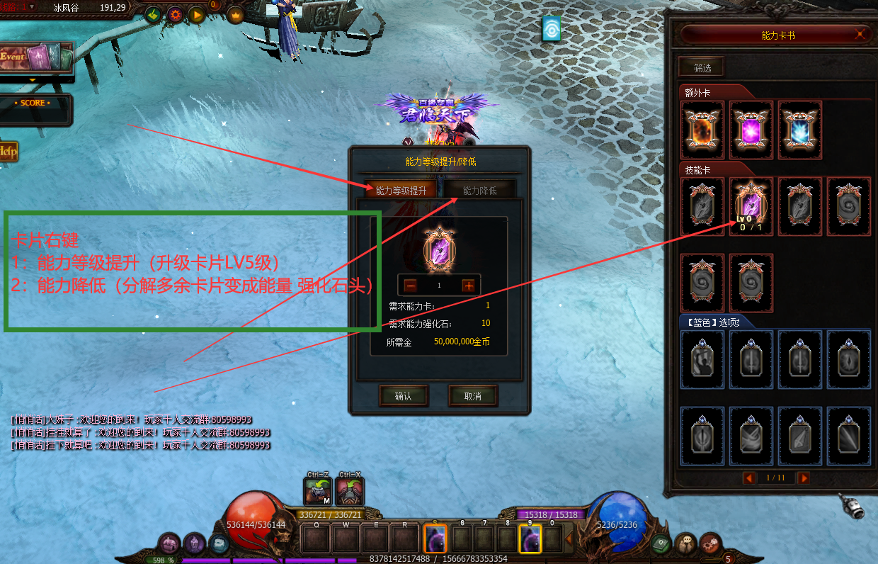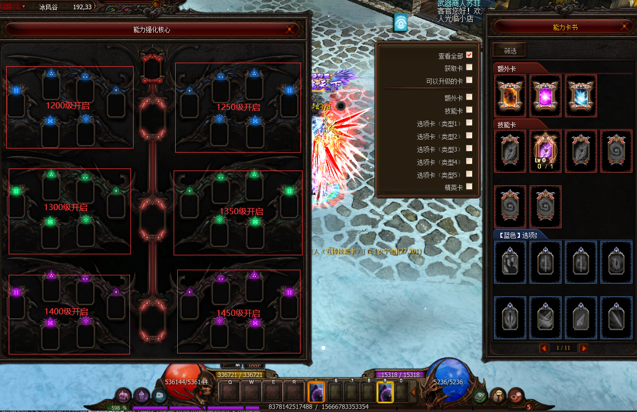 能量卡开启等级升级分解说明 1能量核芯卡分为[技能卡]/[选项卡]以及[选项卡(精英)3种类型] 2可以通过打开能量核芯卡簿查看各职业专属的能量核芯卡,并且可以使用鼠标拖放插入到能量核心卡槽内 3在能量核心卡簿内可以使用鼠标右键进行强化/降级对应的能量核芯卡的等级 4未获得的能量核芯卡的图案会以灰色卡面展示,已获得的能量核芯卡则以彩色的卡面展示,同时角色可以通过筛选功能快速找到角色拥有的能量核芯卡 | |||||||||